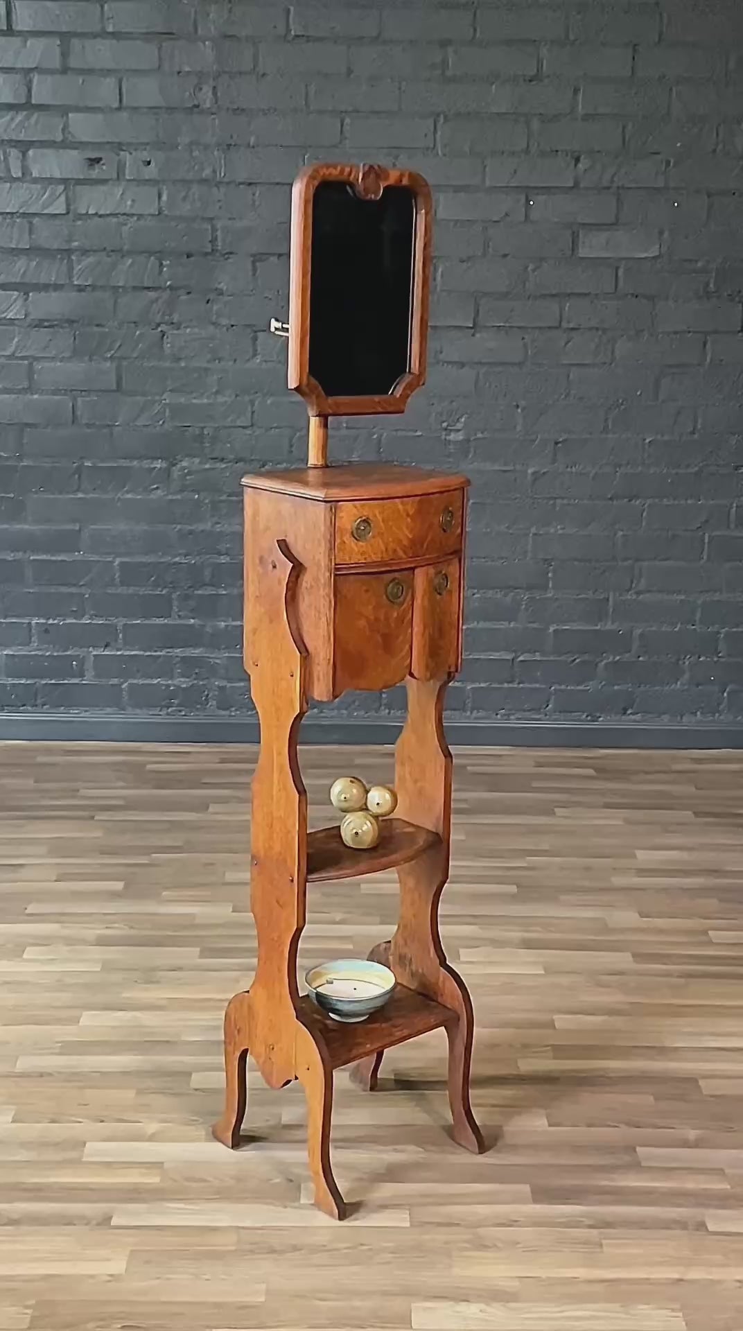 Early 1900s Art Nouveau Style Gentleman’s Shaving Grooming Stand w/ Tilting Mirror