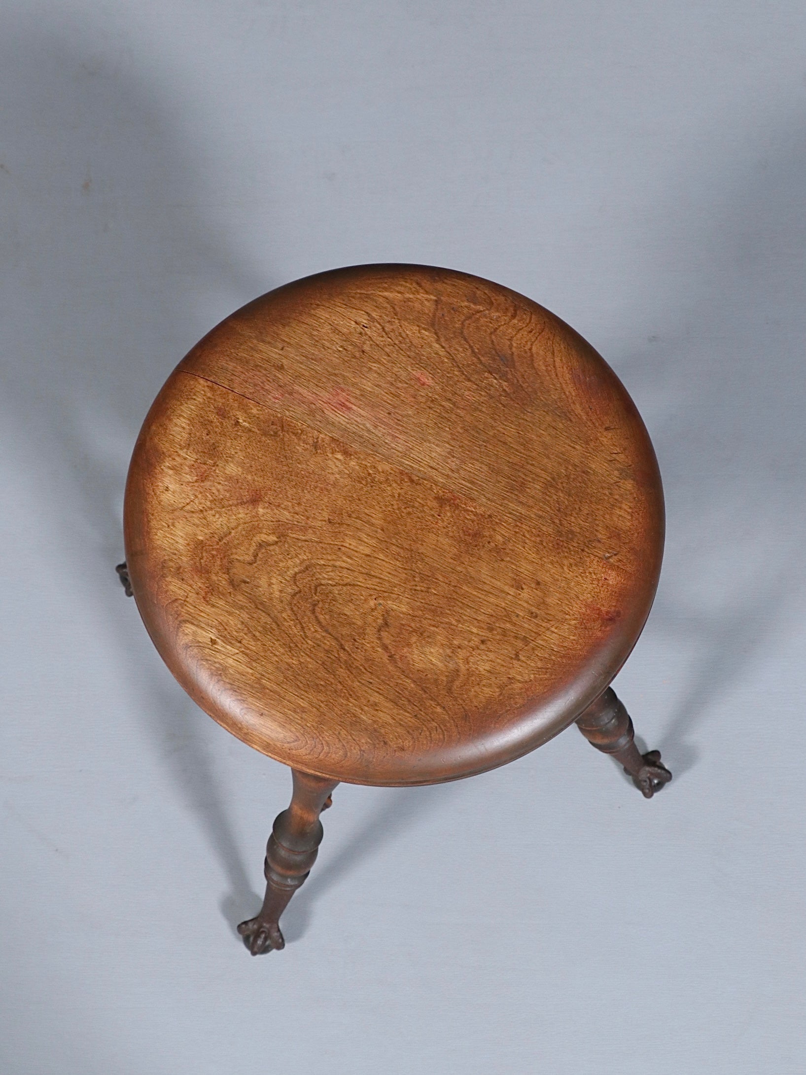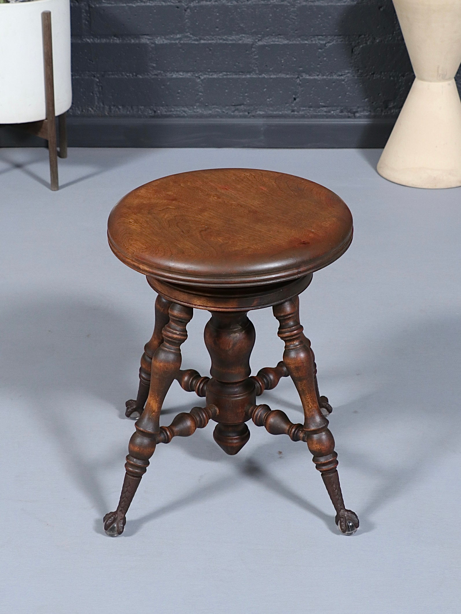 American Victorian Adjustable Piano Stool w/ Ball & Claw Glass Feet, c.1930’s