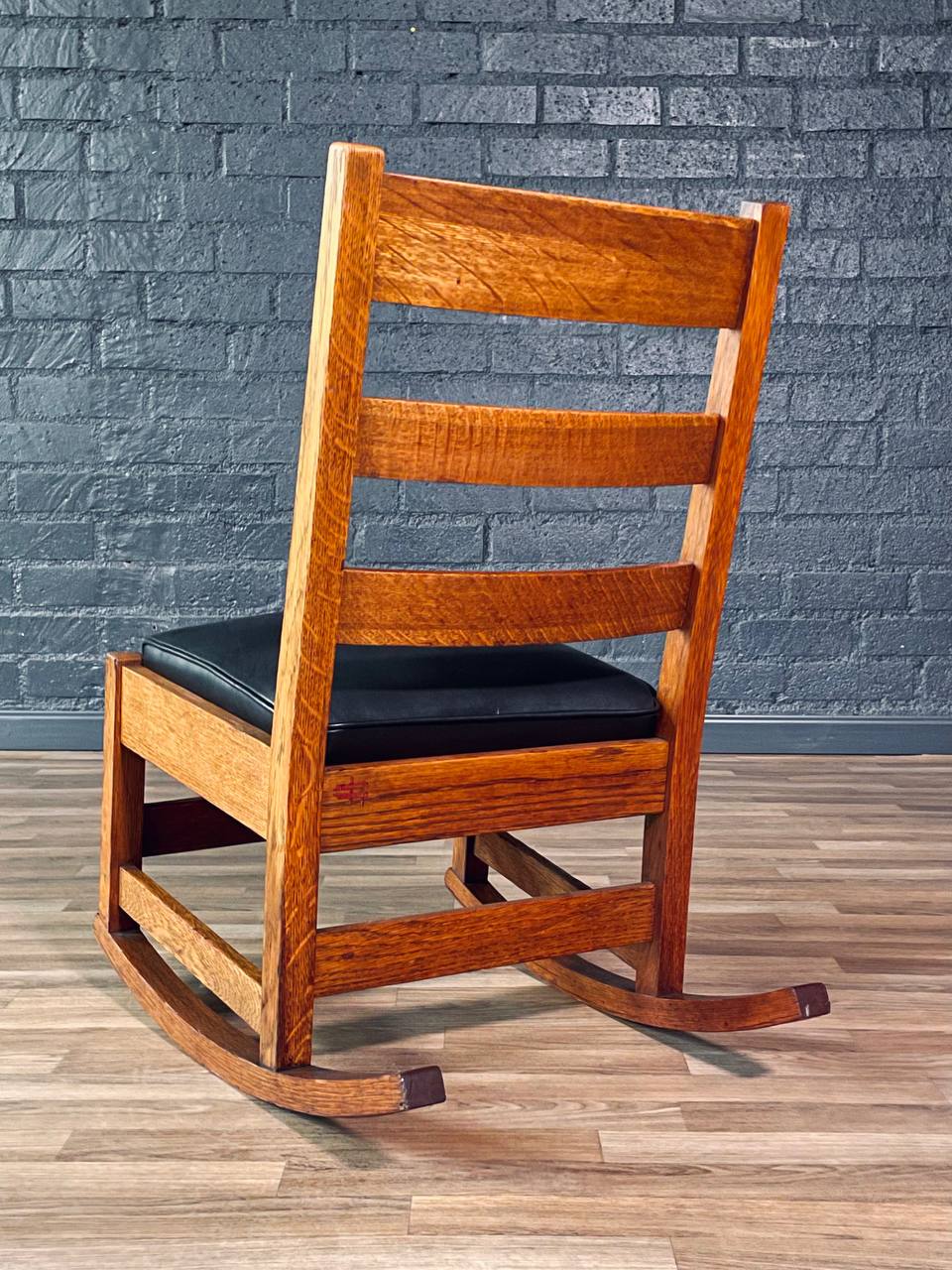 Arts & Craft Mission Tiger Oak & Leather Rocking Chair by Stickley, c.1910’s