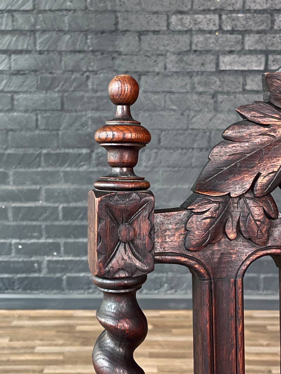 English Baroque Oak & Tooled Leather Armchair w/ Barley Twist Legs, c.1910’s