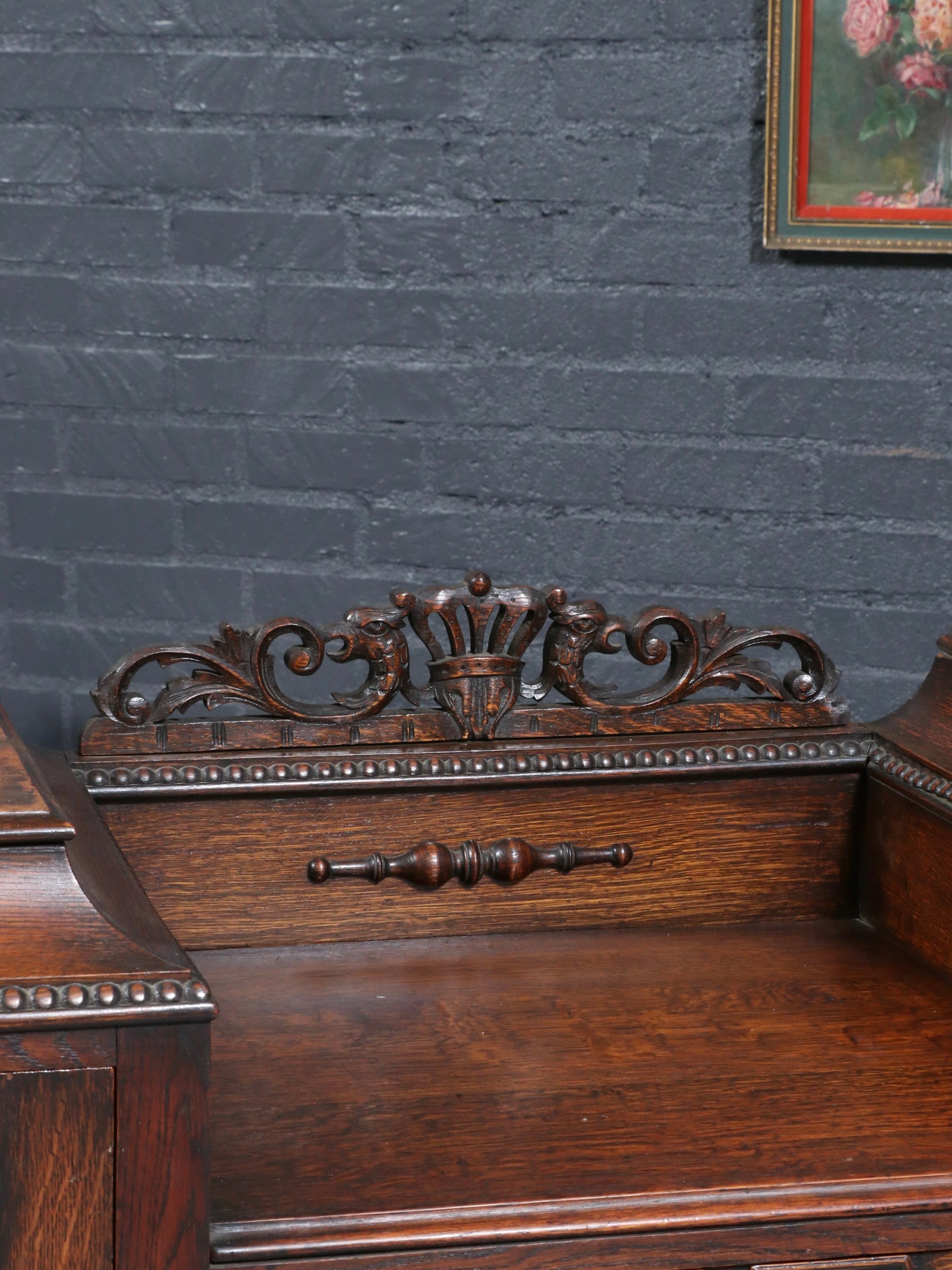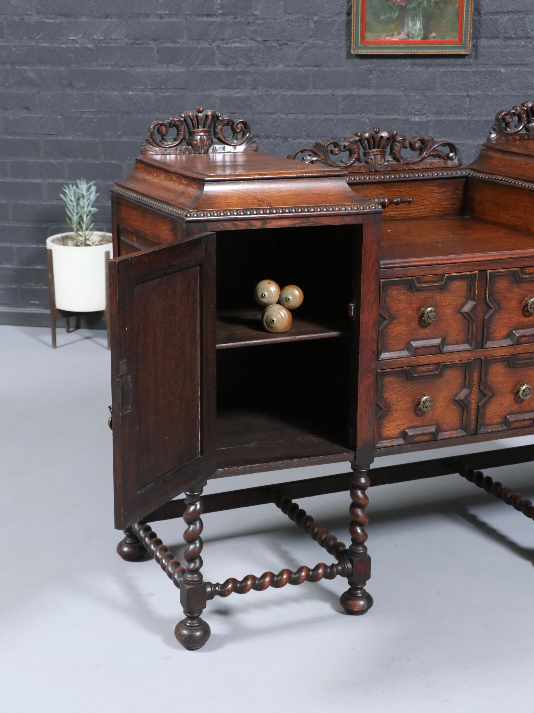 English Jacobean Style Oak Sideboard w/ Barley-Twist Legs, c.1900’s