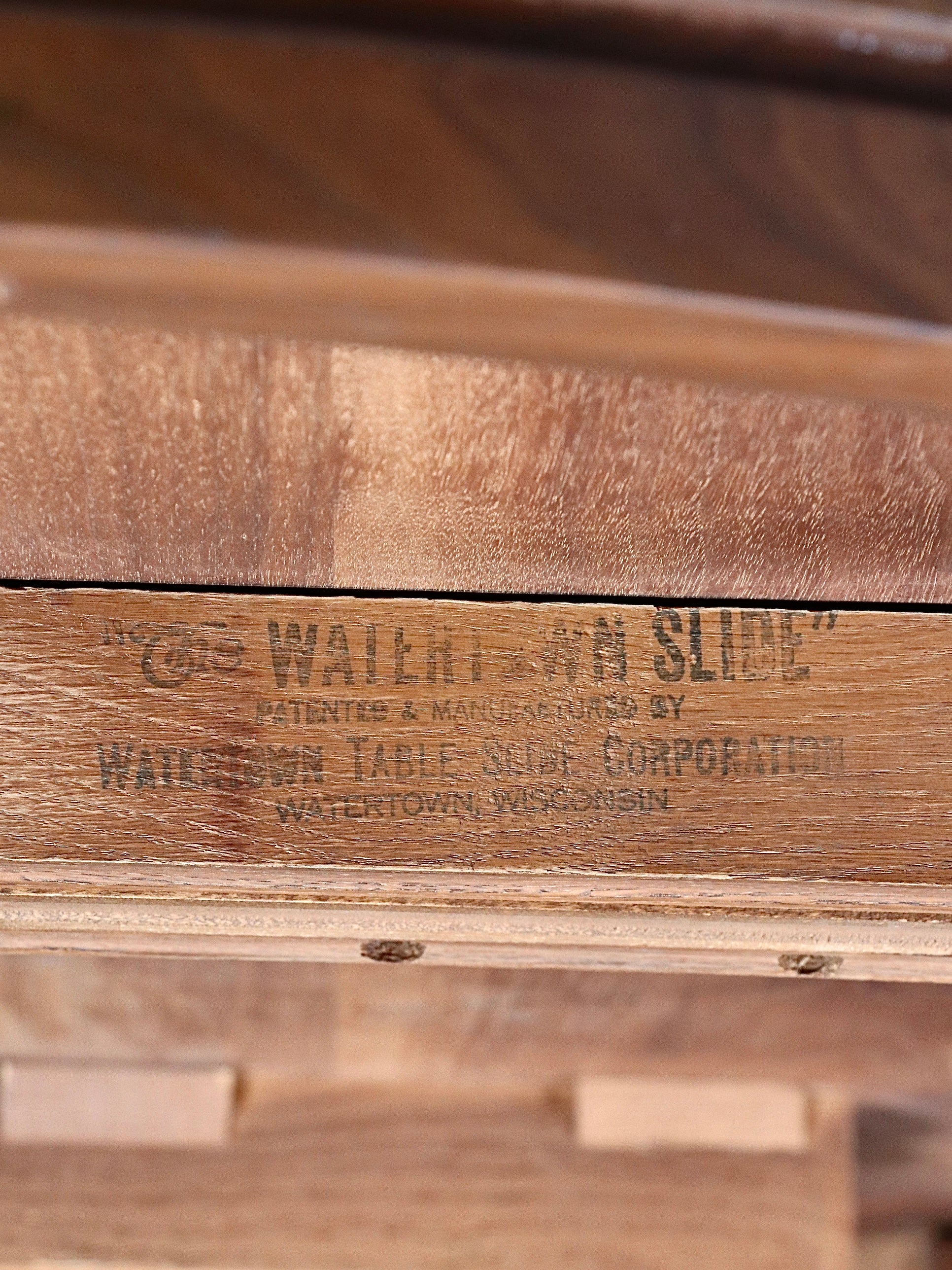 Fun Historical Fact: In the 1960s, expanding dining tables became increasingly popular in American homes as open-plan living and frequent entertaining grew more common. Makers often incorporated precision slide systems—like the Watertown “Walerite” slide seen here—to ensure smooth, reliable operation for decades. These mechanisms reflected a period when engineering and design worked hand in hand to support the evolving lifestyle of the modern family.