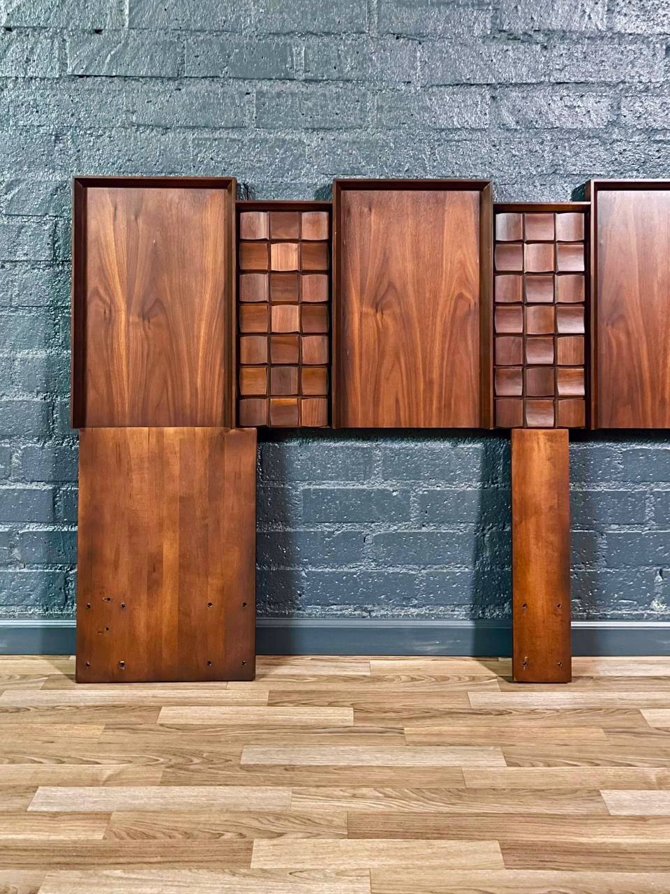 King Size Mid-Century Modern Brutalist Walnut Headboard, c.1970’s