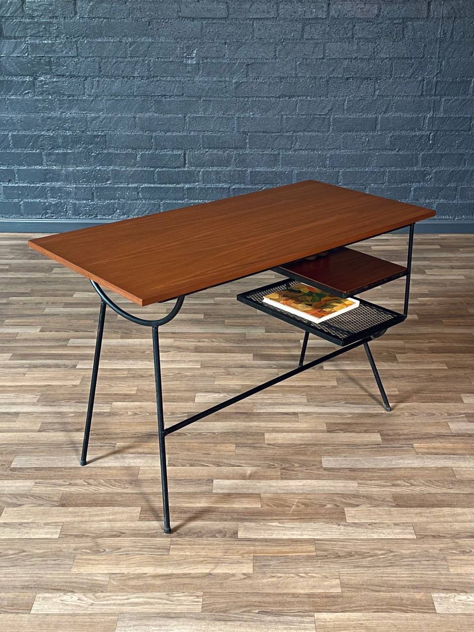 Fun Historical Fact: In the 1950s, many American designers embraced iron as a primary structural element, influenced by European modernism and the Bauhaus movement. This period saw a rise in “light but strong” furniture, where thin profiles and geometric accents created a modern aesthetic that stood in contrast to the heavier furniture of earlier decades. Pieces like this desk captured the optimism of postwar design, merging practicality with avant-garde style.