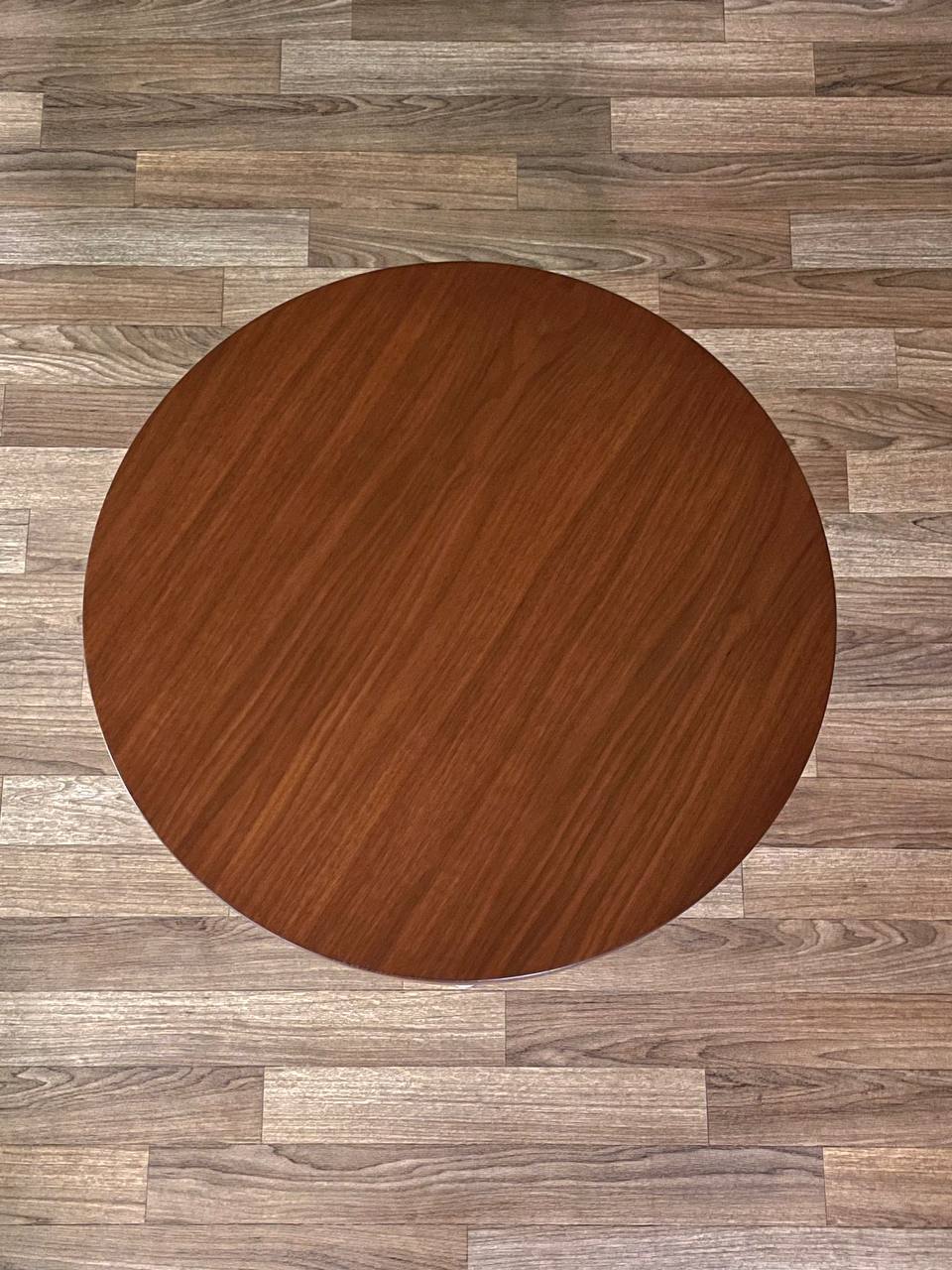 Description: This beautifully refinished 1960s walnut side table by Lane features a striking round top resting on a sculptural tripod base with brushed metal gliders. Its sleek lines and rich walnut grain exemplify the timeless elegance and craftsmanship of American Mid-Century Modern design. The geometric base creates a sense of balance and lightness, while the deep tone of the walnut adds warmth and sophistication. Expertly restored inside and out, this table blends organic materials with architectural form, making it an ideal accent for both classic and contemporary interiors.