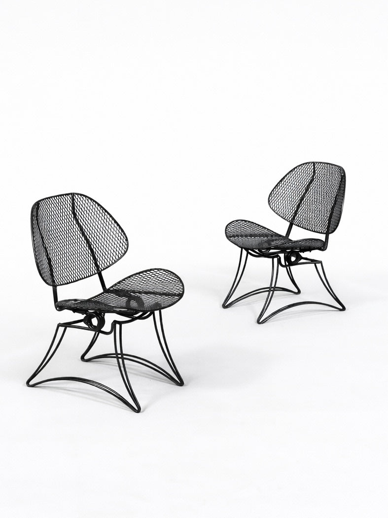Pair Homecrest "Casino" Mesh Iron Clamshell Style Chairs, c.1960’s