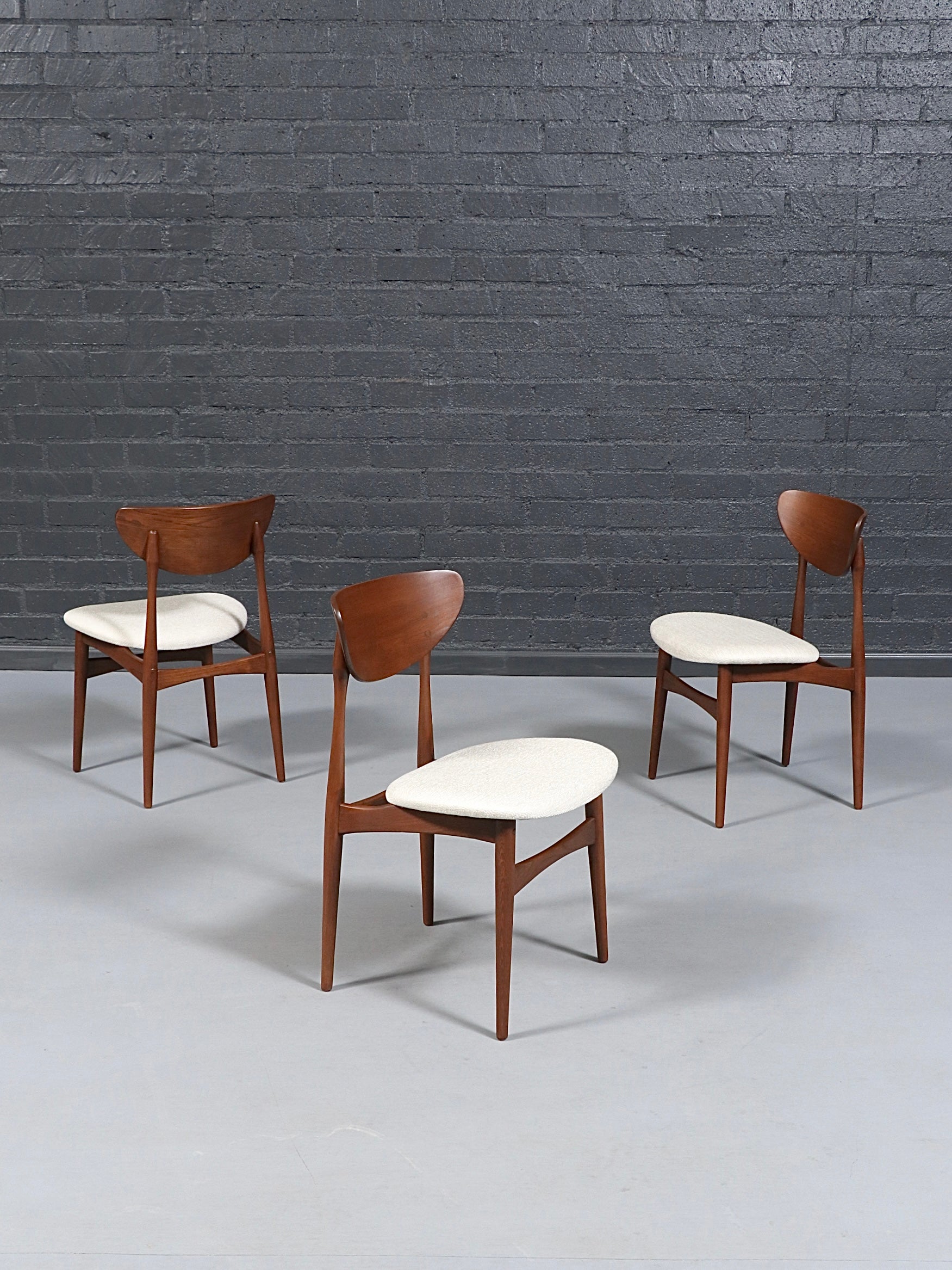 Set of 4 Mid-Century Modern Sculpted Walnut & Tweed Dining Chairs, c.1960’s
