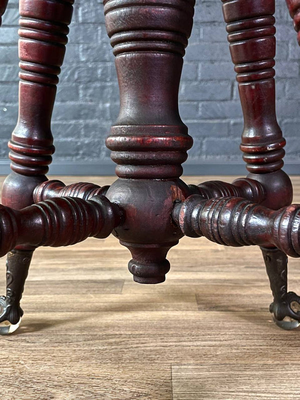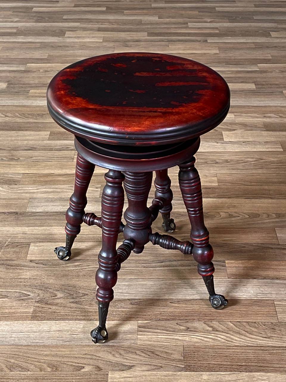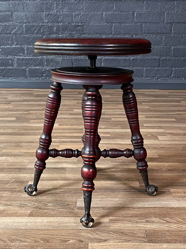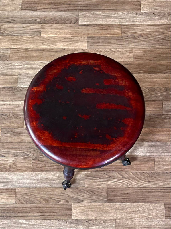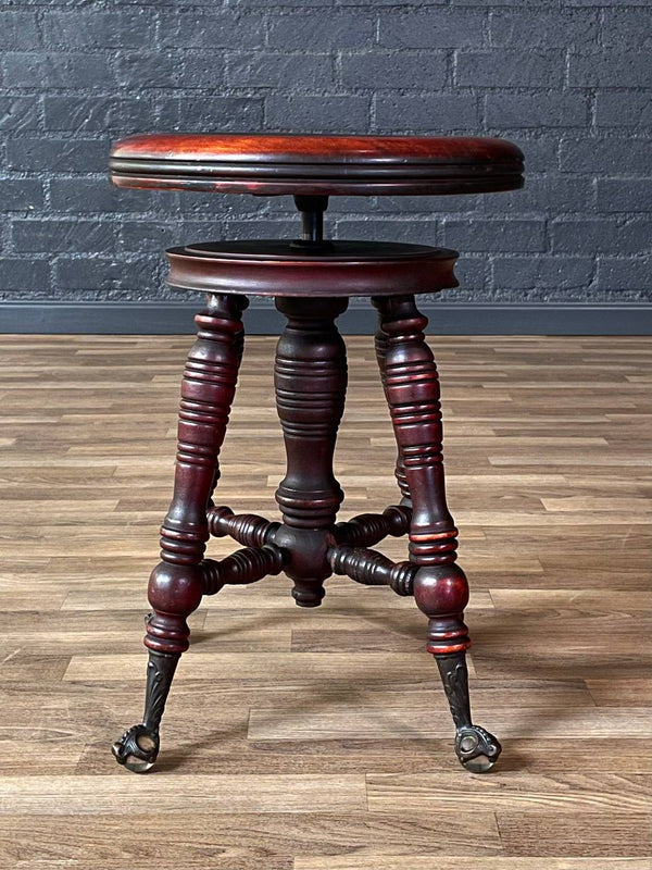 Victorian Mahogany Adjustable Piano Stool w/ Ball & Claw Glass Feet, c.1930’s