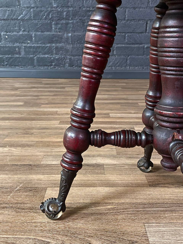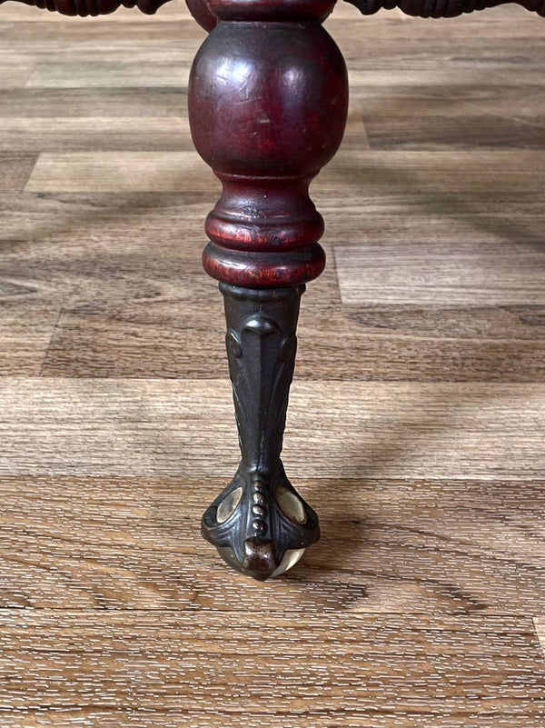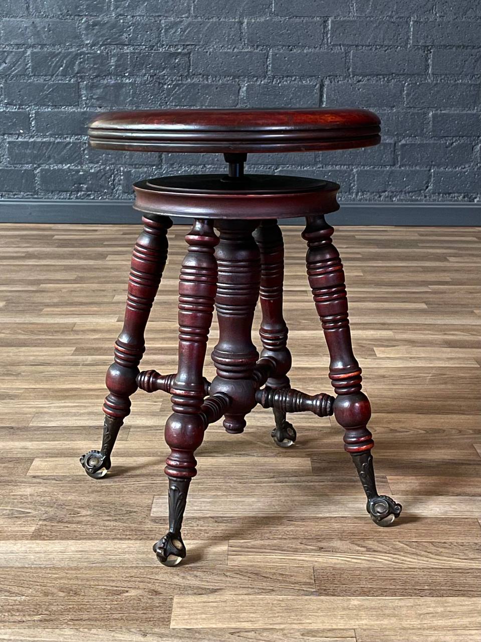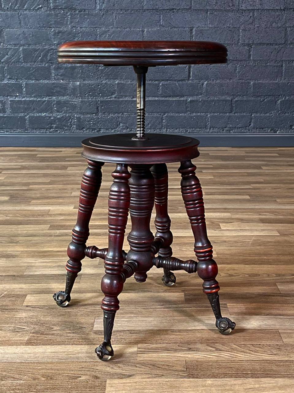 Victorian Mahogany Adjustable Piano Stool w/ Ball & Claw Glass Feet, c.1930’s