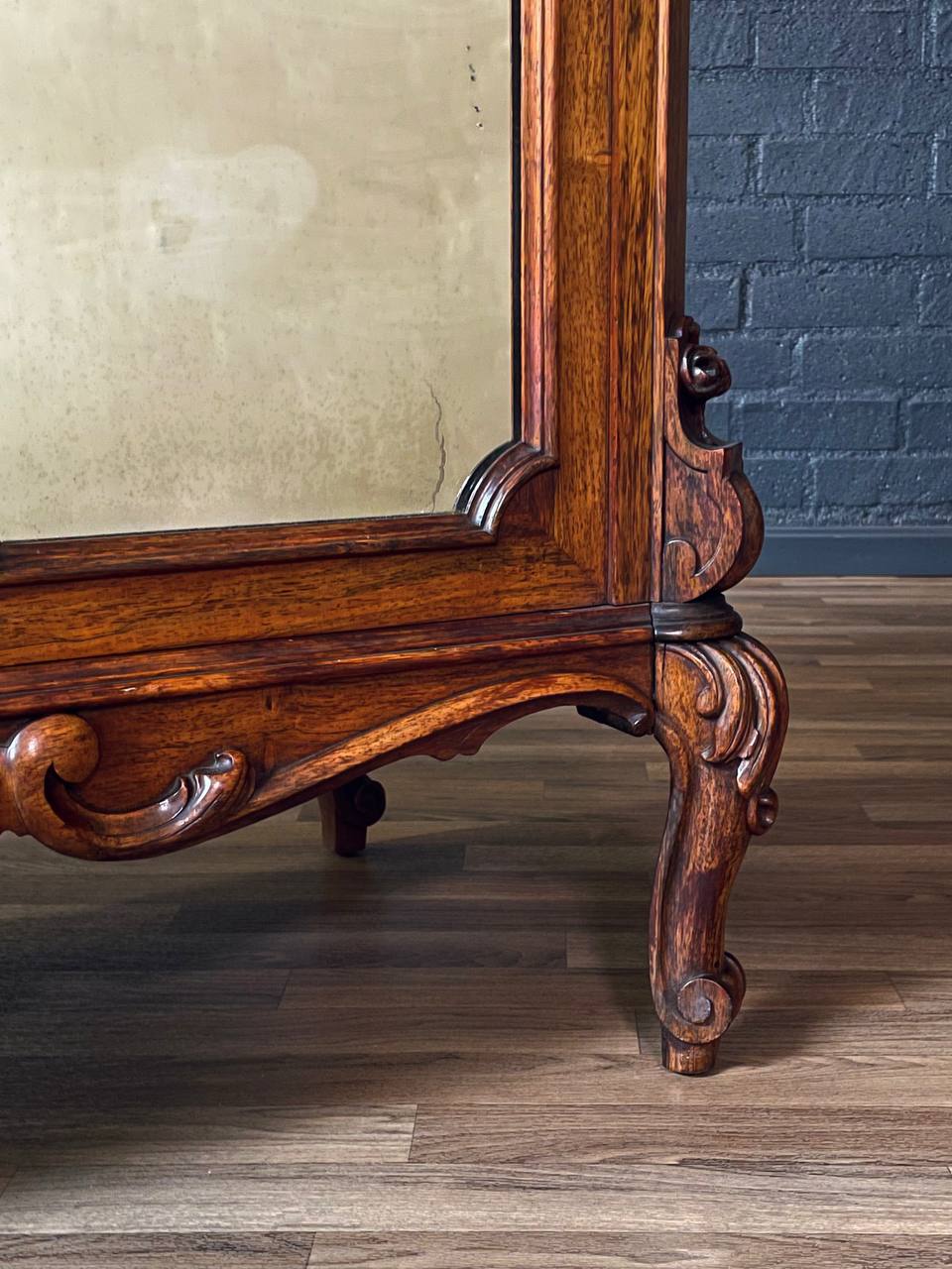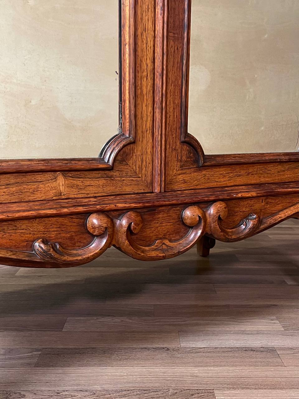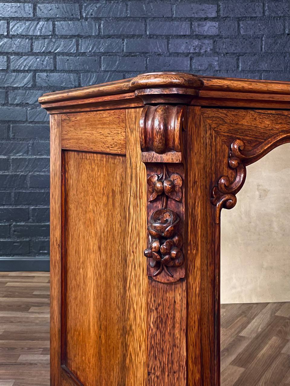 Description: This antique French Louis XV style cabinet, crafted in the 1920s, showcases exquisite walnut woodwork paired with its original mirrored doors. The piece features elegant cabriole legs, ornate floral carvings, and scrolling details that embody the timeless refinement of the Louis XV tradition. Its warm walnut tones and gently aged patina highlight the cabinet’s authenticity and charm, while the original mirror glass adds both character and historical integrity. With a spacious interior, it offers practical storage behind a beautifully decorative façade. A true statement piece, this cabinet brings a touch of European sophistication to any home.
