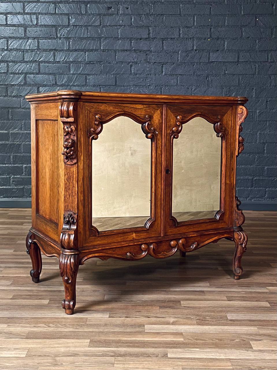 Antique French Louis XV Style Walnut Cabinet w/ Mirrored Doors, c.1920’s
