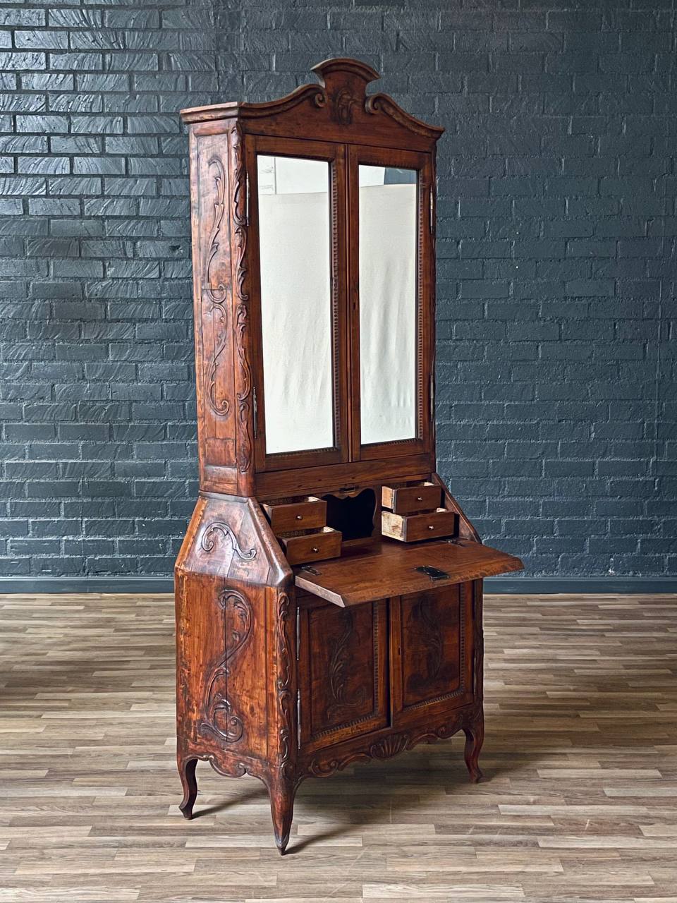Antique French Provincial Louis XV Style Carved Secretary Cabinet w/ Mirrored Doors, c.1890’s