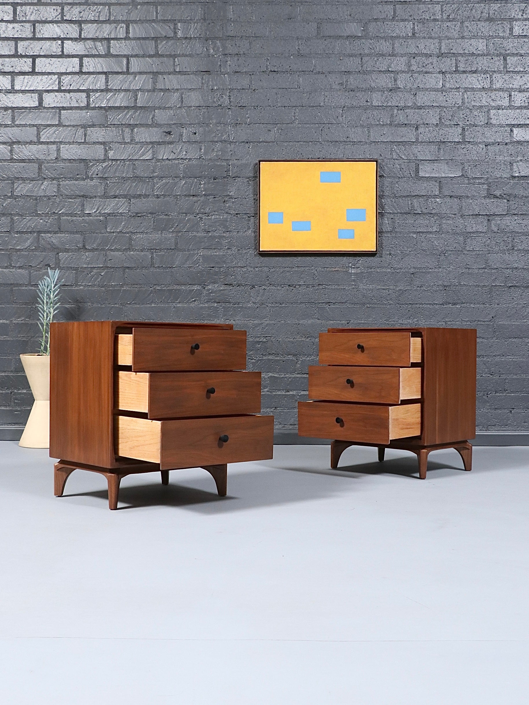 Pair of Mid-Century Modern Sculpted Walnut Night Stands by Vanleigh, c.1960’s