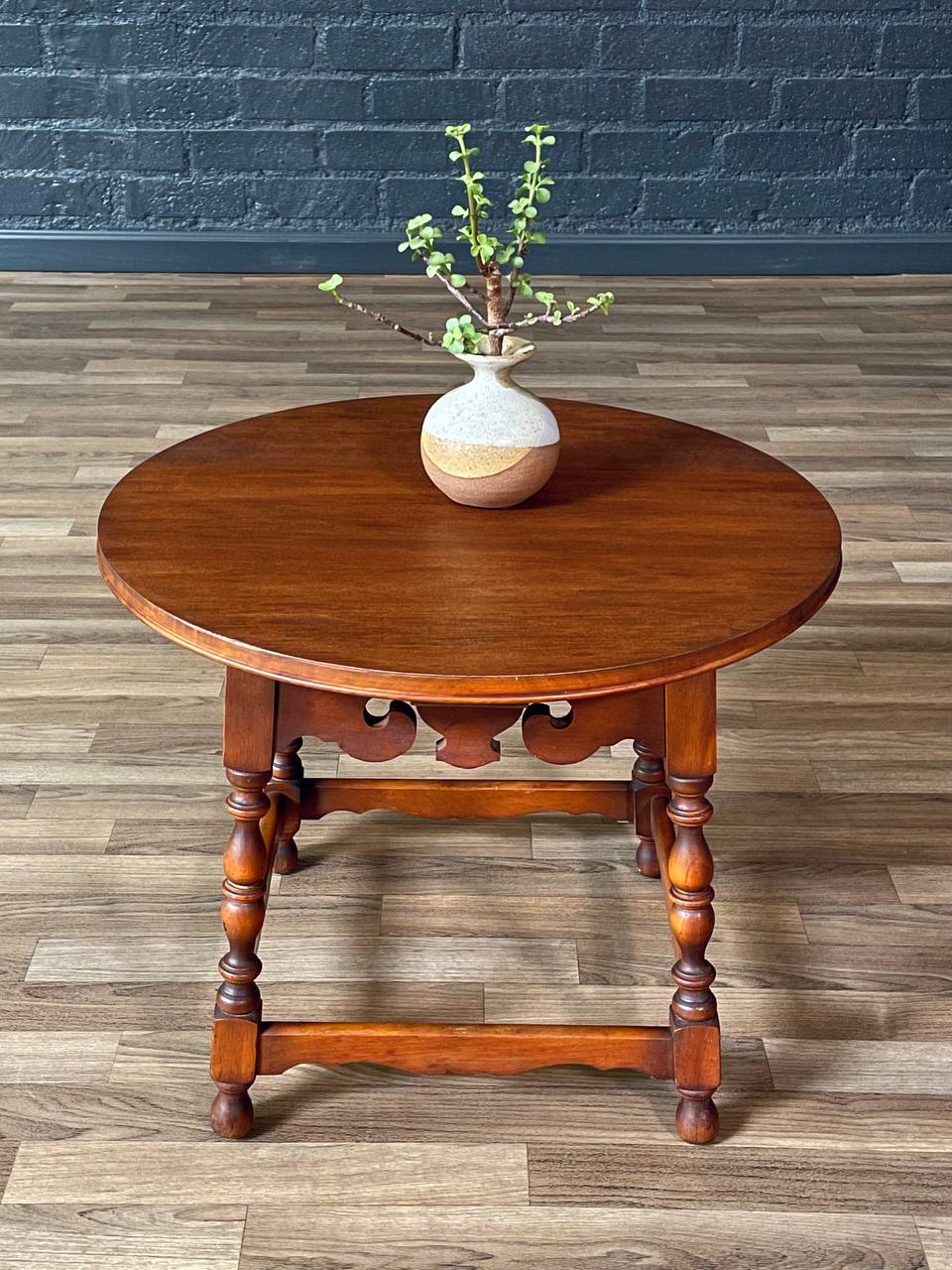 American Colonial Style Round Maple Side Table w/ Turned Legs, c.1930’s