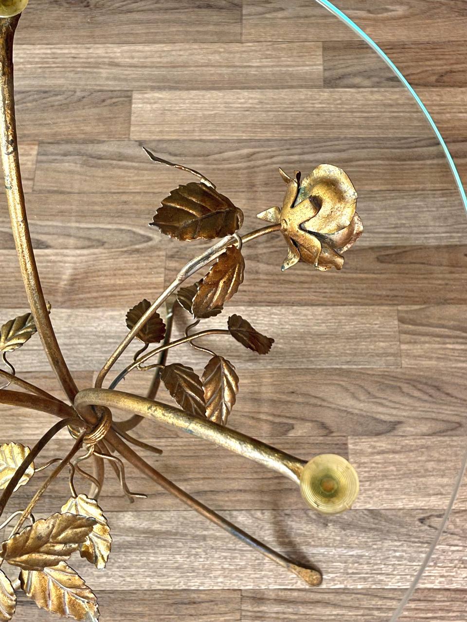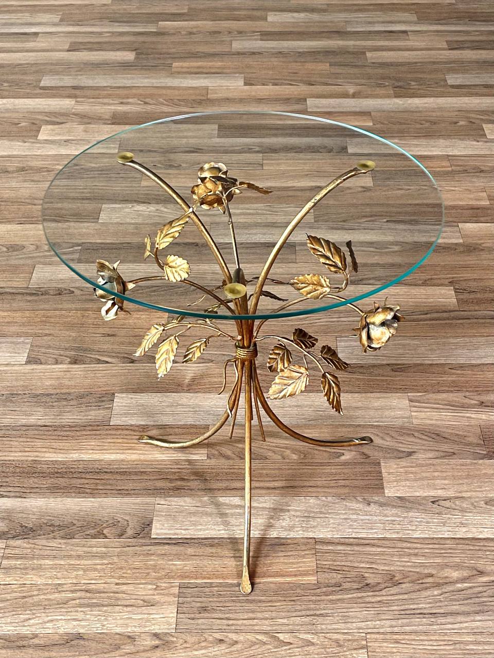 Italian Hollywood Regency Gilt-Metal Rose & Leaf Side Table w/ Glass Top, c.1960’s